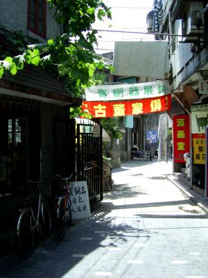 Keine Ahnung, wann genau ich mit Stefan unterwegs war, aber jedenfalls waren wir zuerst im Norden des Stadtkerns unterwegs (bei diesem netten Park, wo "urinating und shitting" nicht gern gesehen war). Hier gibt es eine Strasse, in der in den 20er Jahren die Intelligentia Chinas lebte, also Literaten und andere Taugenichtse!