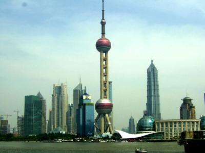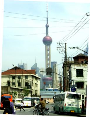 Pearl Of The Orient Tower, Pudong. ...Kitsch. Auf dem zweiten Bild rechts im Hintergrund ist der Jin Mao Tower zu sehen, das hoechste Gebaeude Shanghais. Oben drin ist die CLOUD 9, die (lt. Guinness Buch) hoechste Bar der Welt.