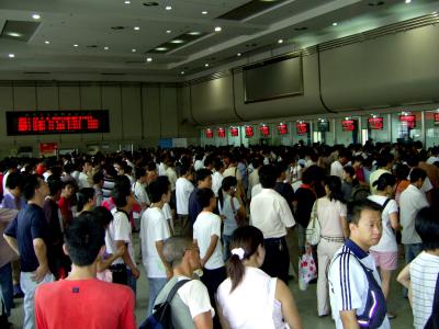 In Hangzhou angekommen, brauchten wir erst einmal Rueckfahrtickets. Das tolle an der chinesischen Bahn ist naemlich, dass man Fahrkarten immer nur am Abfahtsort kaufen kann. Hin- und Rueckfahrtickets sind zu kompliziert und machen es den Leuten nur allzu bequem. Und ausserdem gaebs dann nur noch halb so viele huebsche Schlangen in denen man seine Freizeit verbringen kann...