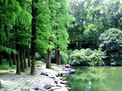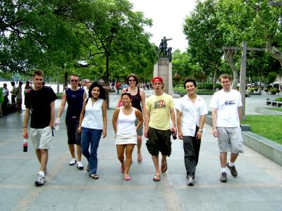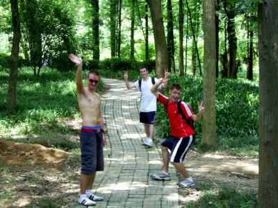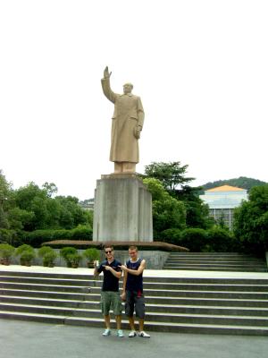 Dann endlich ins Taxi und ab zum Campus. Da wir nur zu zweit waren konnten wir bei John und den anderen im Dorm schlafen. Die Hangzhou Uni soll zu den Top3 Universitaeten Chinas gehoeren. Konnten wir zwar nicht beurteilen, schoen war's auf dem Campus aber trotzdem. Viel gruen, wenig Autos (jeii!) und viele junge Leute.