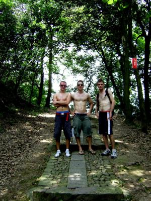 Am Sonntag ging's um 10:00 hoch. Die Zeit lief und wir brauchten erstmal eine Weile, bis wir mit unseren Schaedeln hinterher kamen...das gute Wetter nutzend, sind wir mit Aaron und John ein bisschen in den Huegeln herumgelaufen, die den West Lake umgeben. Die Sonne schien, so dass der Kater schnell vergessen bzw. ausgeschwitzt war...